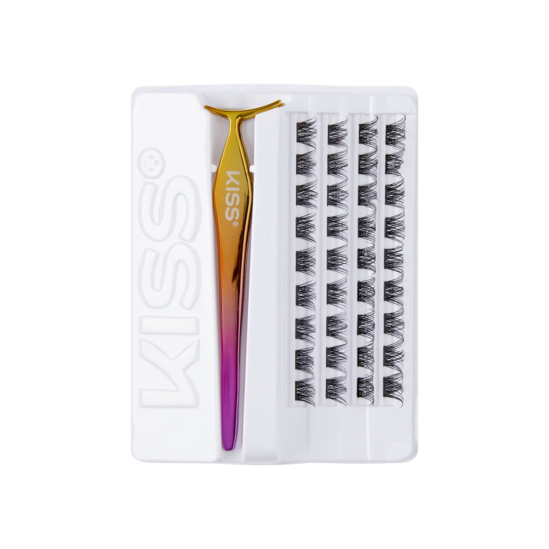 Squeeze clusters and natural lashes together with the applicator