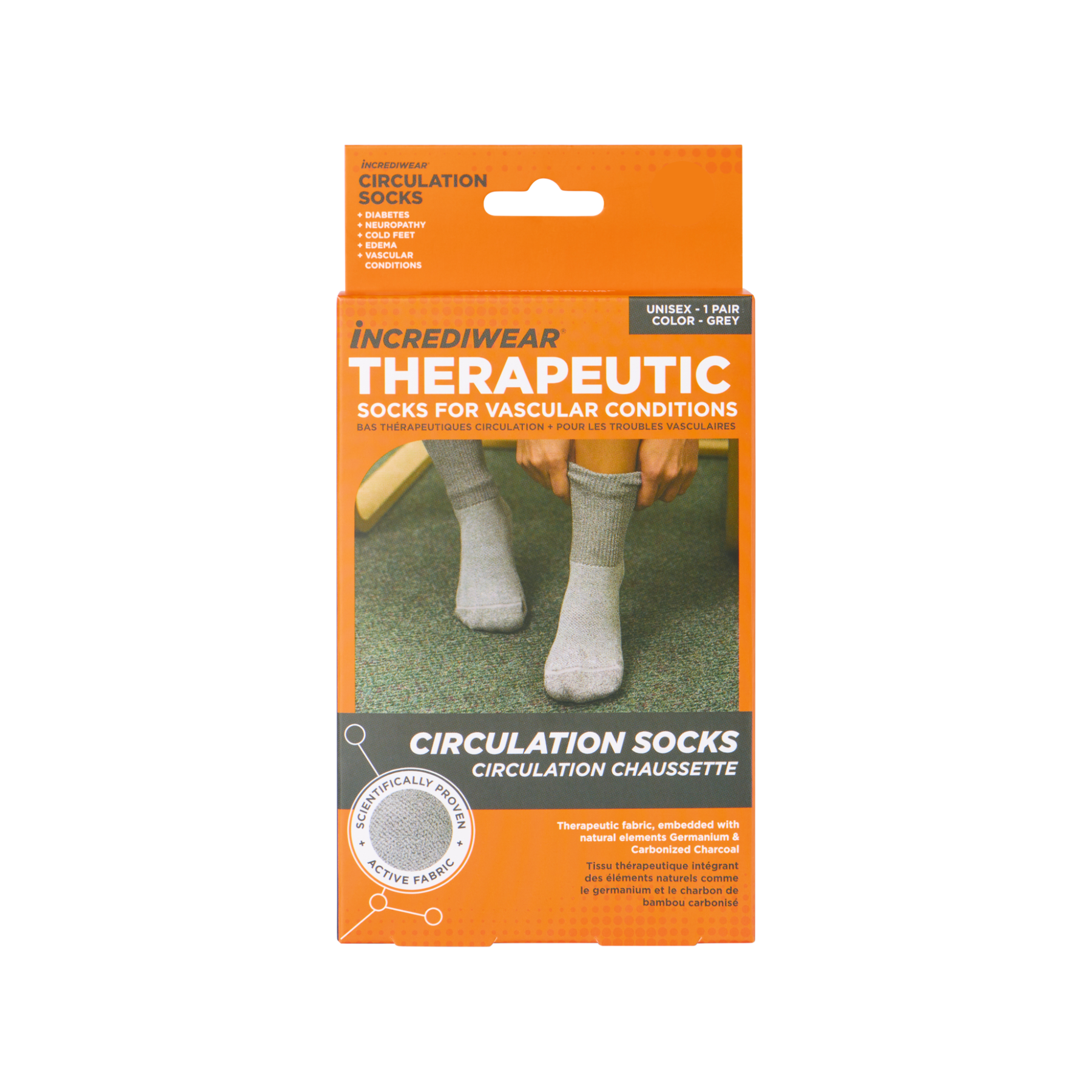 The Incrediwear Circulation Socks relieve pain and discomfort for those suffering from poor circulatory conditions. The non-binding loose weave design allows for a form-fitting feel without the discomfort of a compression sock.